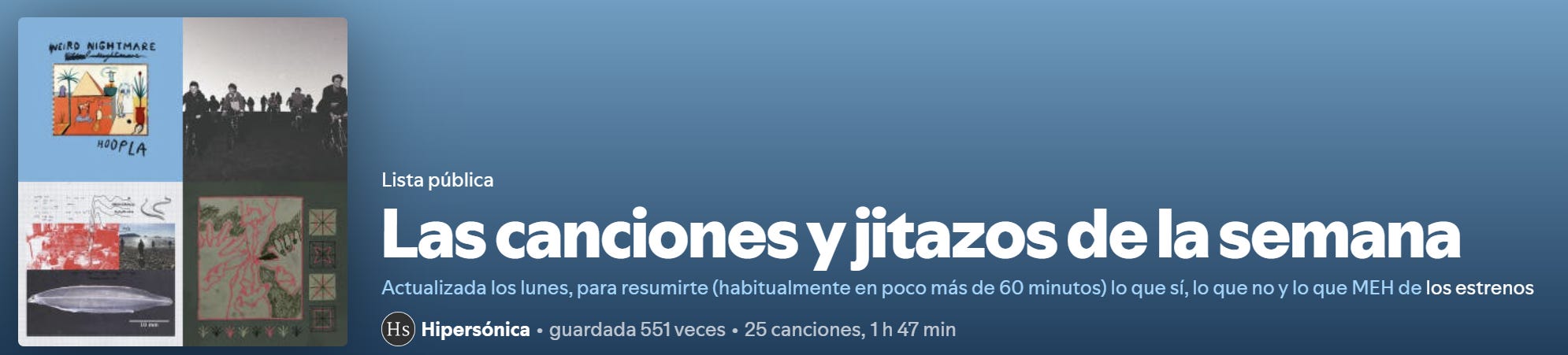 Para empezar el día, la ración de las canciones y jitazos de la semana ya está actualizada en la plataforma que uses.