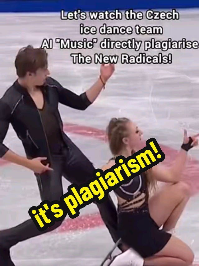 Bastante grave es llenar algo tan guay como los Juegos de Invierno con bazofIA, pero es que además les metió en el problema que trataban de evitar. La pieza generada acabó plagiando descaradamente la letra de ‘You Get What You Give’ de The New Radicals, causando un escarnio añadido para la pareja checa. Terrible a muchos niveles.