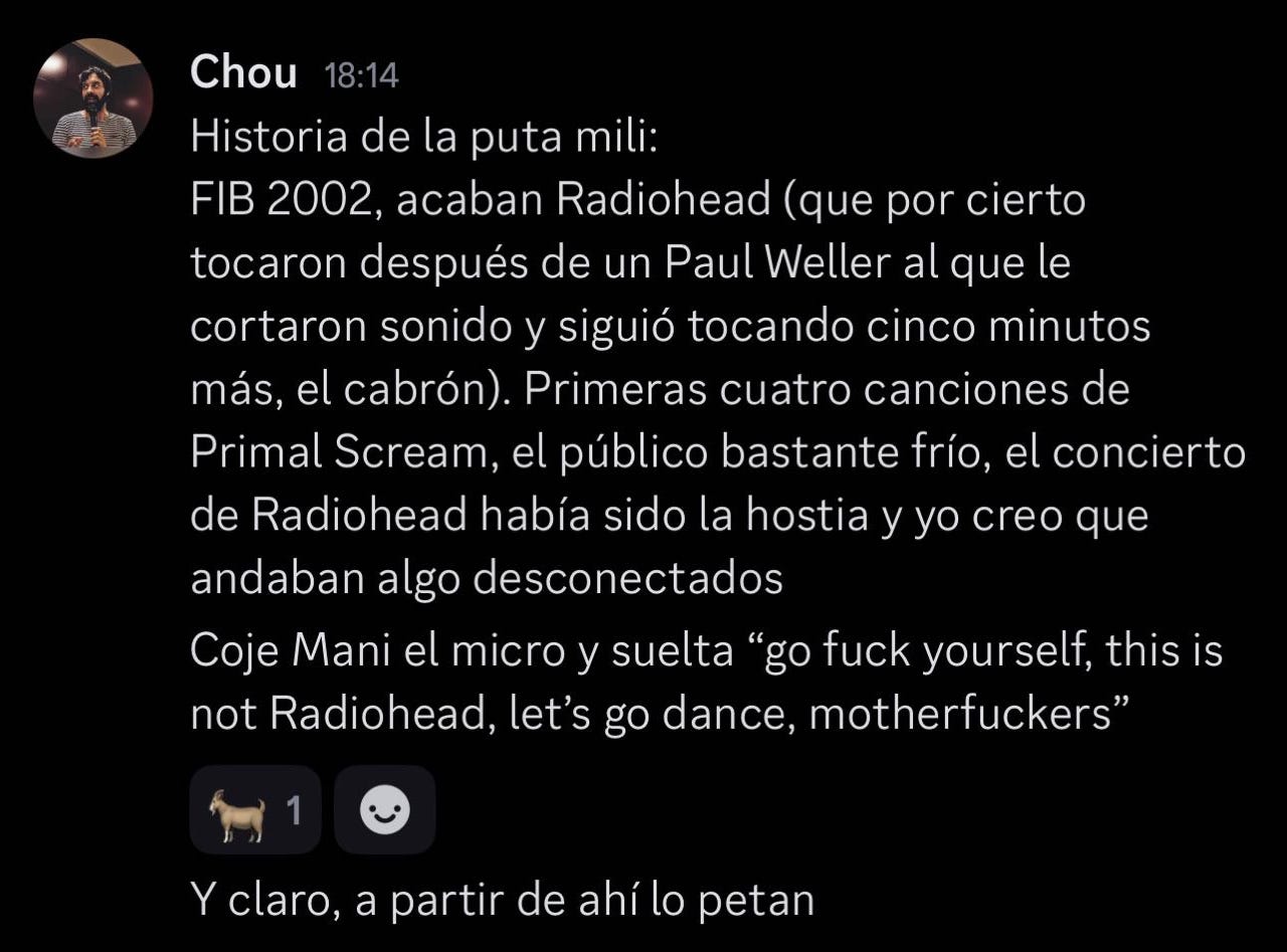 A nivel musical, lo peor de todo es cómo va ganando terreno el fenómeno más mainstream de hoy, es decir, las coordenadas hard techno y una aceleración que roza casi lo absurdo del tempo en todas partes (y muchas veces lo anti dj, si me apuran). Ahí están Amelie Lens o Charlotte de Witte. Más guay lo de los grandes clásicos Cabaret Voltaire, Nia Archives o el doblete de Julianna Barwick & Mary Lattimore o el bueno de Joy Orbison. Pero sí, de los adelantos más flojos de los últimos tiempos.