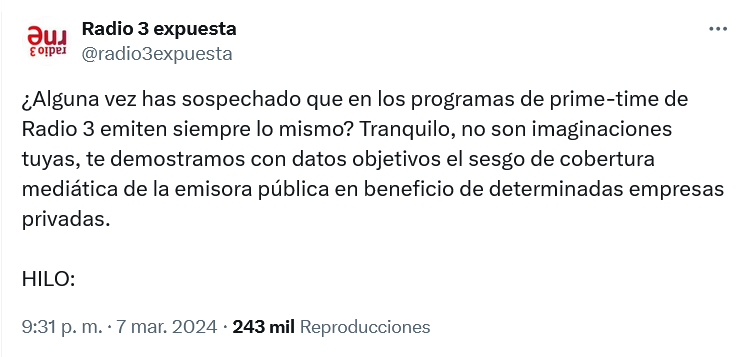 El dato más duro: “solo 5 discográficas ocupan más del 50% de tiempo dedicado a artistas nacionales”. De nuevo, no se descubre América aquí, pero si este exposé flojito sirve para que se replanteen COSAS, pues algo ganamos.
