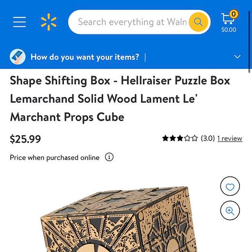 Podría parecer típico artículo de The Onion u otros medios paródicos de la línea El Mundo Today, pero se ve que es totalmente cierto. Cadenas como Wallmart están usando merchandising de Hellraiser como juguete infantil.