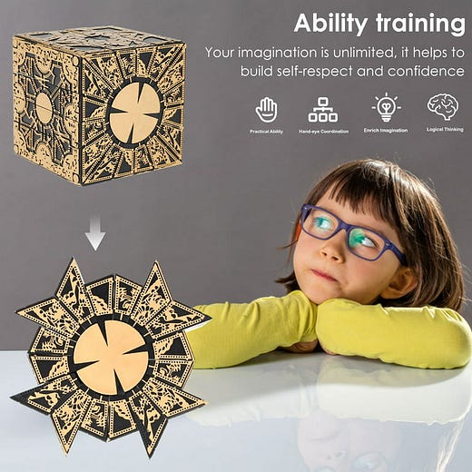 “Este juguete ayudará a los cenobitas a capturar a tu hijo y llevarlo a la dimensión cenobita. ¡Muy divertido!”.