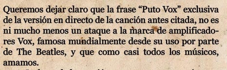 El trío gallego ha decidido comentar con el comunicado de más arriba que se mantienen orgullosos de su actuación y que, en efecto, puto VOX: