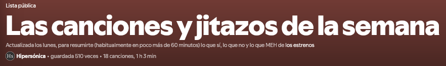Para empezar el lunes, la ración de las canciones y jitazos de la semana ya está actualizada en la plataforma que uses.