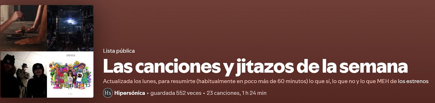 Para empezar el día, la ración de las canciones y jitazos de la semana ya está actualizada en la plataforma que uses.