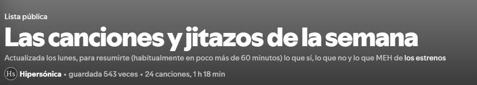 Para empezar el día, la ración de las canciones y jitazos de la semana ya está actualizada en la plataforma que uses.