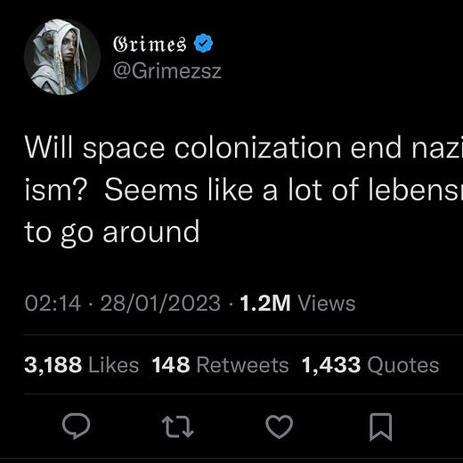 ☀ Grimes también hace bromas sobre nazis. “Vete a colonizar el sol” es una gran respuesta de Alice Glass: