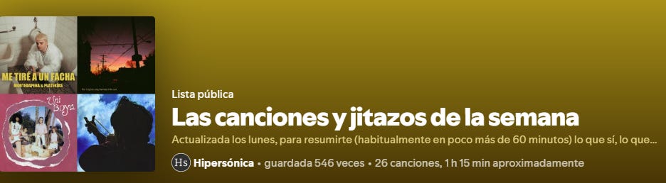 Para empezar el día, la ración de las canciones y jitazos de la semana ya está actualizada en la plataforma que uses.