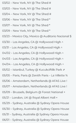 También ha presentado fechas de una gira que evidencia un poco lo que dijimos hace años de que el futuro iban a ser residencias en pocos sitios con muchos conciertos. Para atajar los costes de transporte y logística de salir a tocar se van a transformar los conciertos en extensiones de departamentos de turismo: