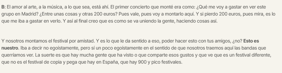 Incluso sin ir al Canela a uno le queda la sensación de que ha sido un momento especial porque 1) ver los hilos con los disfraces es divertido y 2) la gente no para de hablar de lo guay que ha sido. Por ello ver el artículo de reacciones de Raül López en Sustrato mola, porque reúne a organizadores, músicos y espectadores explicando que ha supuesto para ellos el festival. De los primeros, por supuesto, mola especialmente leer cosas como: