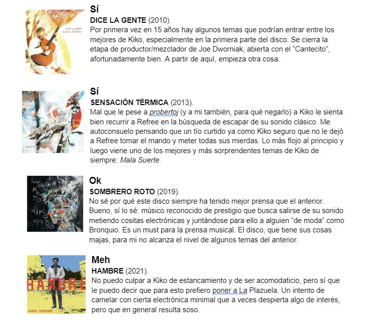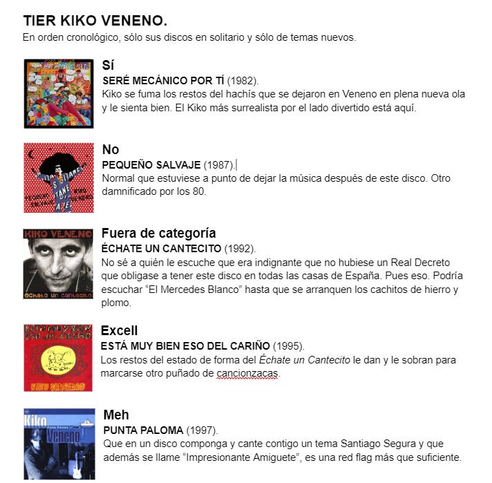 El segundo ganador de enero es Saimonsen, con una hermosa tier de Kiko Veneno que nos ahorra el trabajo porque estamos en (casi) todo de acuerdo: