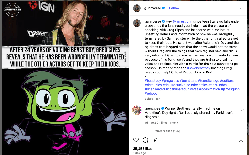 Warner Bros. Discovery de Todos los Santos tuvo que salir a defenderse y aseguró que el despido de Greg Cipes era culpa de que “su interpretación de Beast Boy no era lo suficientemente consistente”.