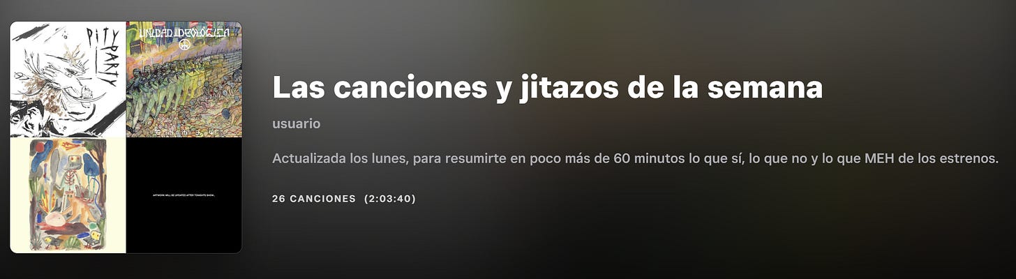 Para empezar el lunes, la ración de las canciones y jitazos de la semana ya está actualizada en la plataforma que uses.